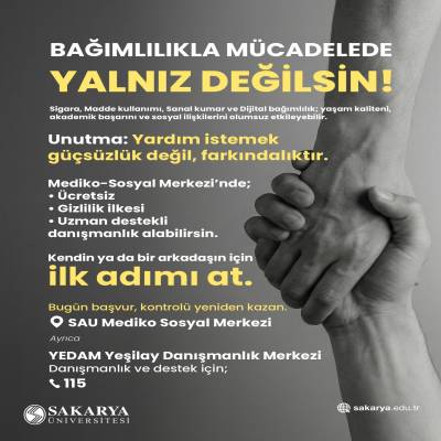 Üniversitemizin Mediko Sosyal Merkezi'nden ya da Yeşilay Danışmanlık Merkezleri'nden ücretsiz destek alabilirsiniz.